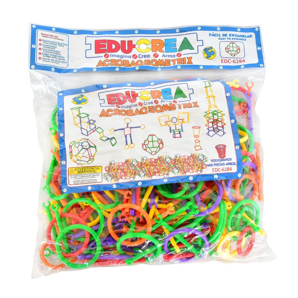 Juego de ensamble con piezas de plástico semi-rígido que se unen entre sí para crear distintas formas. Crea los diseños que tu imaginación te permita. Desarrolla las habilidades estratégicas, la coordinación ojo-mano, la psicomotricidad fina y la imaginación. Empaque: 34 x 29 x 5 cm/ Pieza: 5 x 5 x 0.5 cm