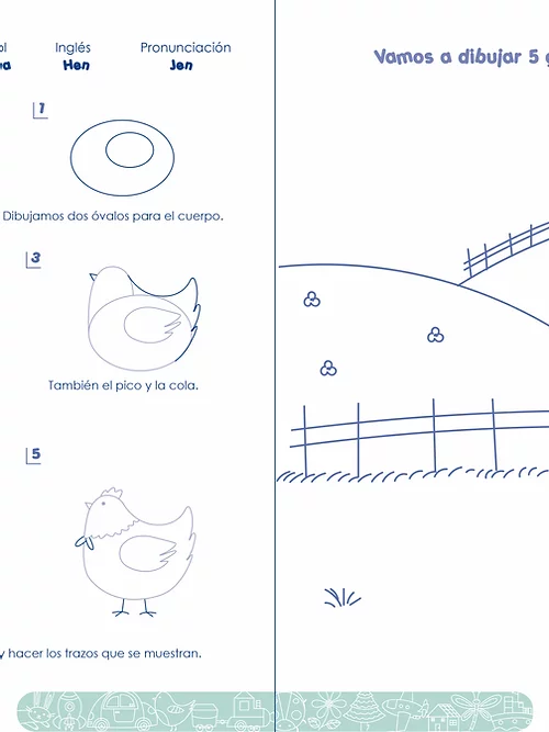 Cuaderno de trabajo que guía paso a paso al dibujante con los trazos que le llevarán a concluir una imagen la cual podrá más adelante insertarla en un paisaje, incrementando con ello su creatividad, memoria y nivel cognitivo. Consta de varias secciones: animales, oficios, objetos, paisajes, etc. Resulta ser un auxiliar para el proceso creativo del alumno sin importar su edad, apoyando a la maestra o educadora en el desarrollo de las actividades del campo formativo de Educación Artística.