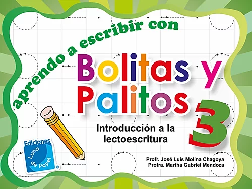 Aprendo a escribir con Bolitas y Palitos 3 (introducción a la lecto escritura) es el tercer nivel de una serie de tres libros que ayudarán a niños en edad escolar en la introducción paulatina de la lectura y escritura por medio de sílabas o carretillas de una forma sencilla y divertida.
