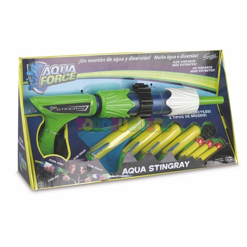 Pistola que lanza proyectiles de espuma con agua o con aire. Depósito con capacidad de 220 ml. Incluye 3 tipos de proyectiles diferentes y puedes alcanzar más de 12 metros de distancia. Con soporte para poner los proyectiles pequeños y punto de mirar para disparos más certeros. Edad recomendada a partir de 6 años.
