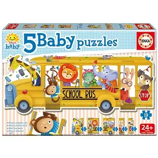 5 puzzles de 2 a 4 piezas para construir auténticas figuras y jugar con ellas. Piezas más grandes, más gruesas y más fáciles de manipular: Estimulan la fijación de la atención así como el desarrollo de la psicomotricidad, la curiosidad e imaginación de los más pequeños.