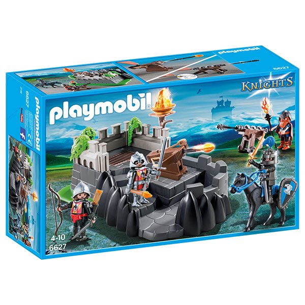 Bastión de los Caballeros del Dragón que incluye 4 figuras, un caballo, armas, escudo y ballesta con flechas de fuego. Edad recomendada: +4 años.