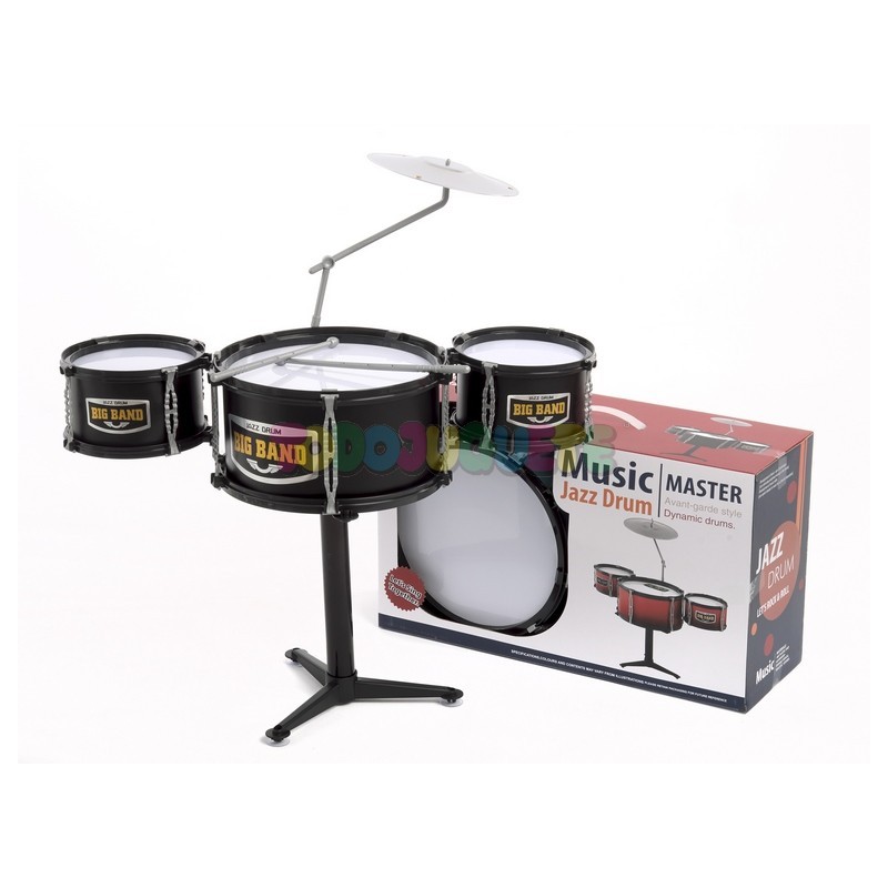 Batería musical de 3 tambores y 1 platillo y baquetas.
