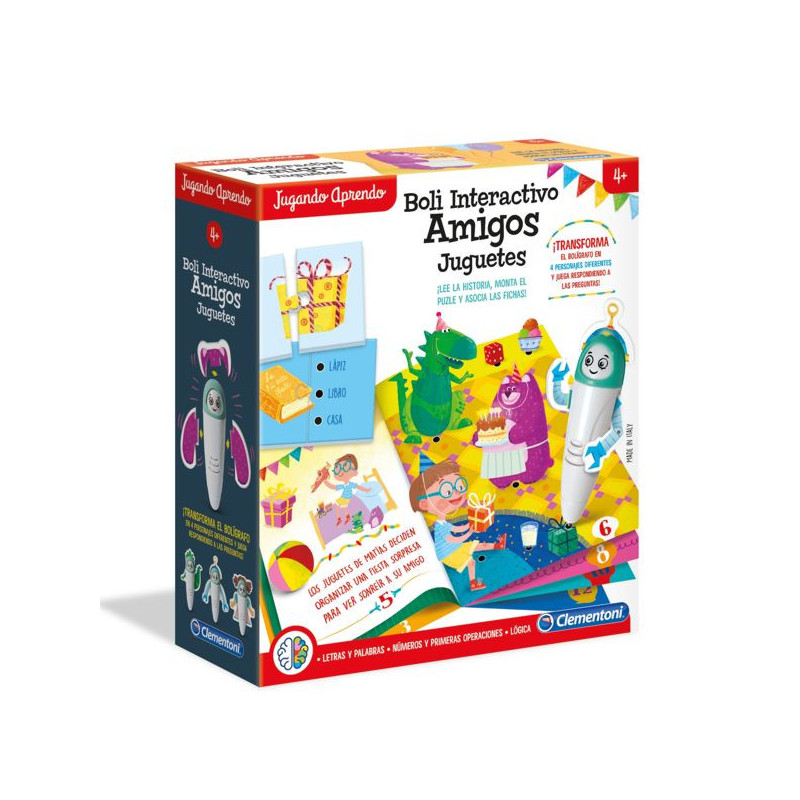 Los amigos de juguete de Matias han organizado una fantástica fiesta sorpresa para él, con muchos juegos para jugar juntos, mientras se divierten descubriendo todos los regalos que ha recibido. Utiliza el boli electrónico convertible en cuatro personajes distintos gracias a sus múltiples accesorios para resolver las actividades educativos con letras, números, operaciones y lógica que propone el libro ilustrado. Y con el puzle «encuentra y cuenta» te lo pasarás en grande aprendiendo con sus piezas para montar y jugar con muchas y divertidas preguntas.