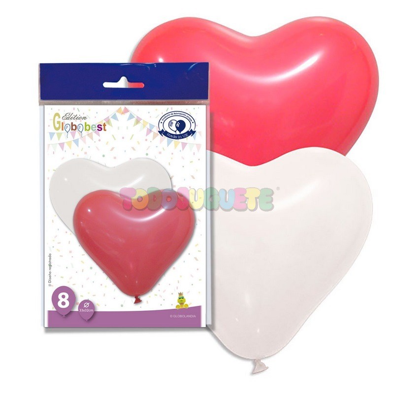 8 globos de corazón rojo y blanco 33 x 36 cm Para una decoración romántica. Este set incluye 8 globos en forma de corazón incluyendo 4 globos blancos y 4 globos rojos de 33 x 36 cm.