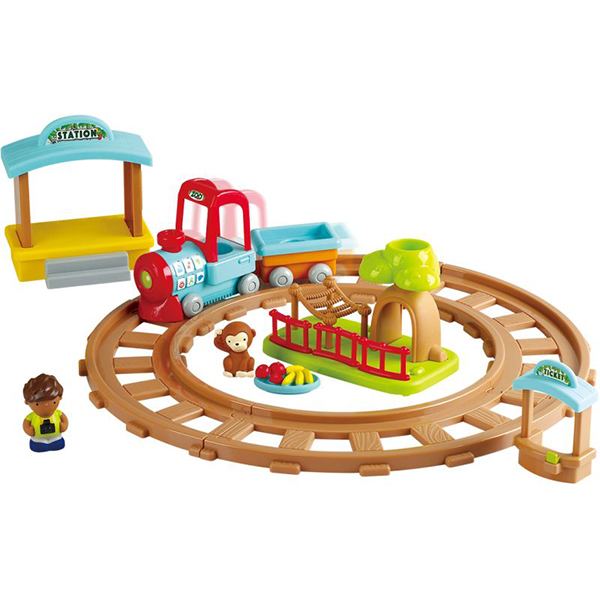 Circuito de tren infantil Zoo Adventure con 6 melodías y sonidos, formado por 12 piezas.