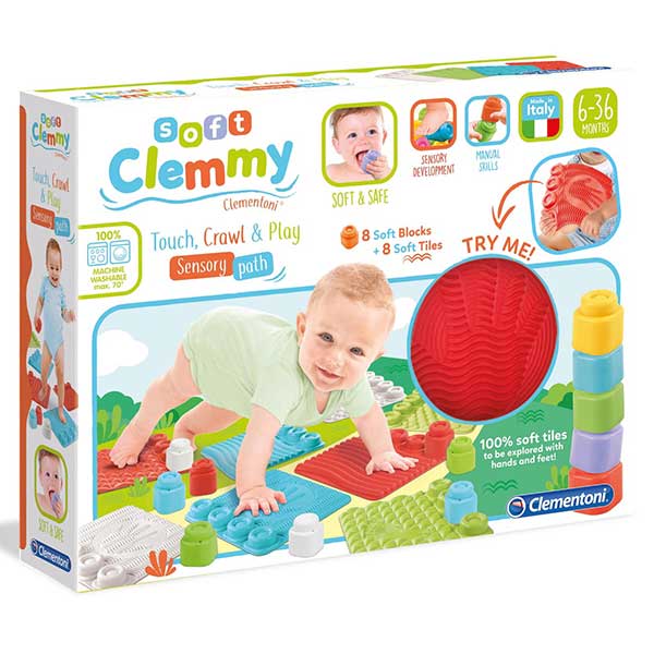 Montando las maxi piezas de goma blandita, segura y no tóxica de Clemmy, los bebés descubrirán un mundo lleno de texturas.