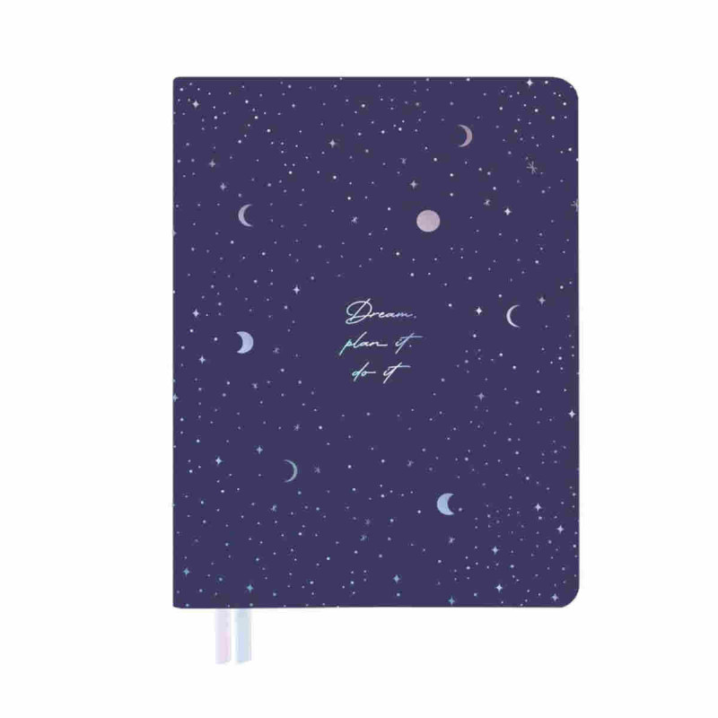 Do it yourself. Con nuestro cuaderno Do It Stella A5 podrás organizarte, crear y diseñar totalmente a tu gusto. Medidas 15 x 21 cm. Su encuadernación flexible te permite abrir tu libreta completamente (360º) y es muy práctica para llevarla a cualquier parte. Son 160 páginas en papel blanco liso de alta calidad (140 gr), resistente a todo tipo de tintas, bolígrafos o rotuladores. Incluye dos cintas de registro. Disponible en formato A5 y B5, elige el que más se adapte a tu rutina o combínalos para diferentes proyectos. Hazte con tu Do it favorito y deja que sus preciosos diseños te inspiren cada día.
