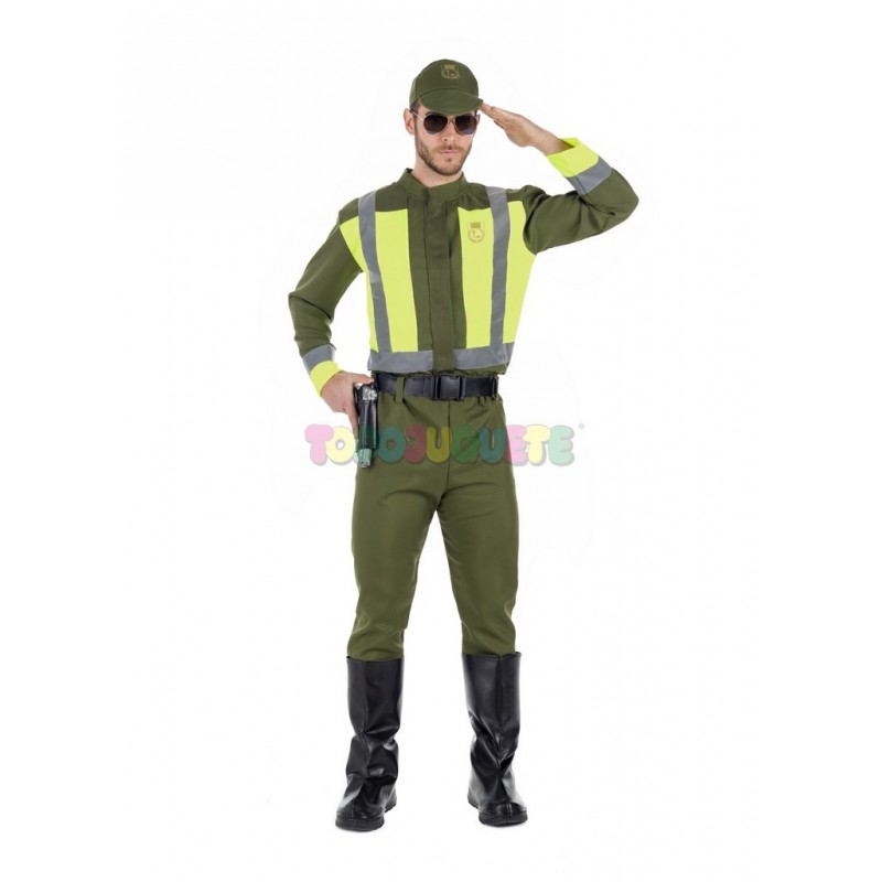 Incluye: gorra, chaqueta, cinturón con cartuchera, pantalón y cubrebotas.