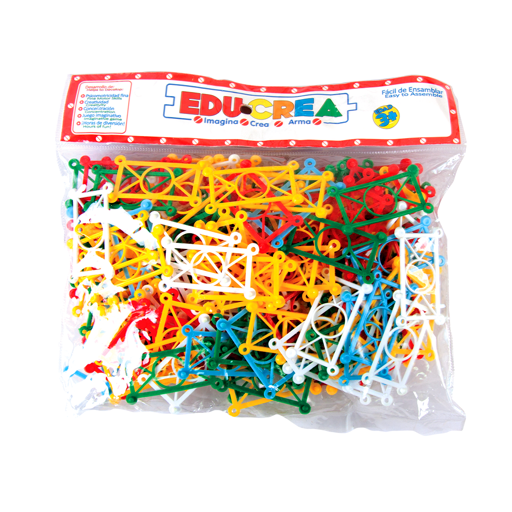Juego de ensamble con piezas de plástico flexible que se unen entre sí de distintas formas. Crea los diseños que tu imaginación te permita. Desarrolla las habilidades estratégicas, la coordinación ojo-mano, la psicomotricidad fina y la imaginación. Empaque: 31 x 29 x 5cm/ Pieza: 6.5 x 4 x 0.5 cm