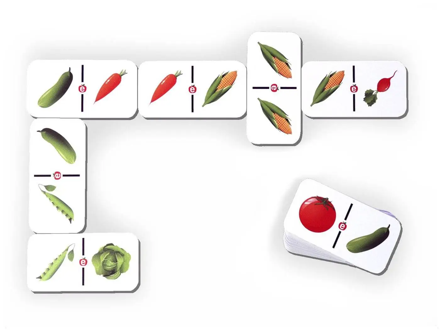 Jugar el dominó de verduras en la forma tradicional, es una manera divertida de fortalecer la concentración, la memoria y la toma de decisiones, beneficiando el trabajo en equipo y la convivencia. Las piezas están elaboradas con material grado alimenticio, impresas con tintas libres de toxicidad.