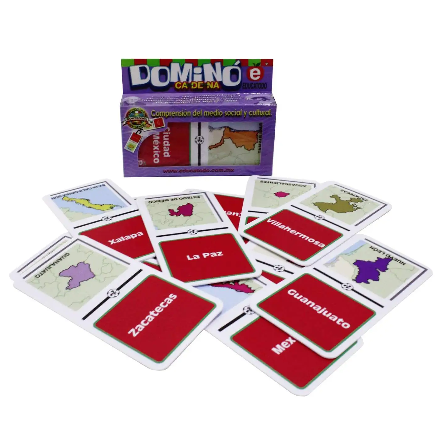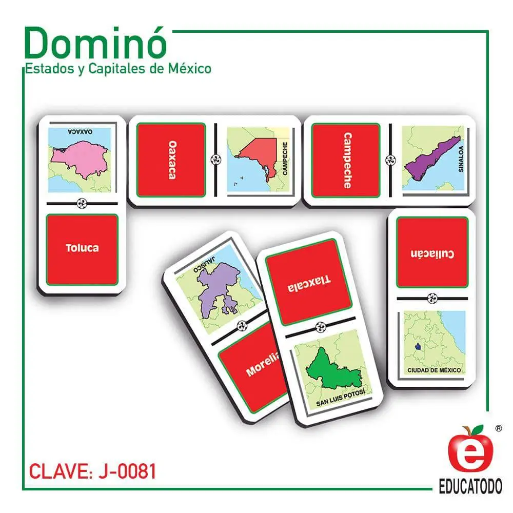 Juega el dominó de estados y capitales de México, asociando el nombre del estado con su capital, reforzando conocimiento de geografía, fortaleciendo la memoria, y la concentración, beneficiando la convivencia. Las piezas están elaboradas con material grado alimenticio, impresas con tintas libres de toxicidad.