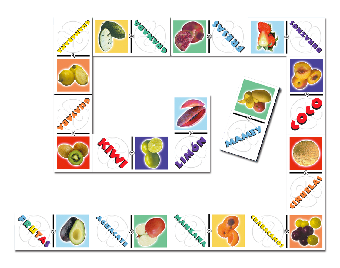 Jugar el dominó texto frutas grande ( por el tamaño de sus piezas) es entretenido, pues consiste en asociar una palabra con la imagen de la fruta que corresponda. Refuerza el conocimiento de las letras la concentración y la memoria, beneficiando el trabajo en equipo y la convivencia. Las piezas están elaboradas con material grado alimenticio, impresas con tintas libres de toxicidad.