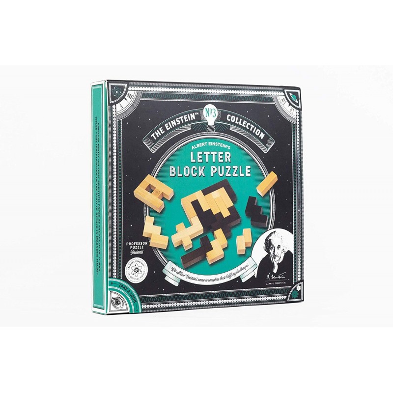 Intenta descifrar los enigmas relacionados con las piezas del rompecabezas con un giro. Cada bloque tiene la forma de una letra diferente del nombre de Albert Einstein.