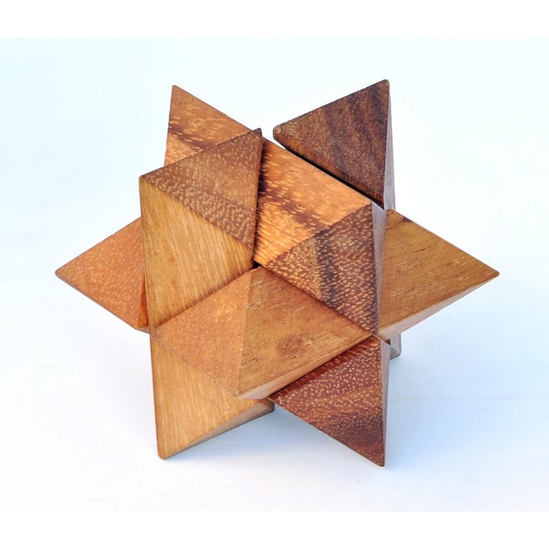 RETO: Desarmar y armar de nuevo la estrella, hecha de 6 piezas. Uno de los mejores rompecabezas de madera 3D imaginado.