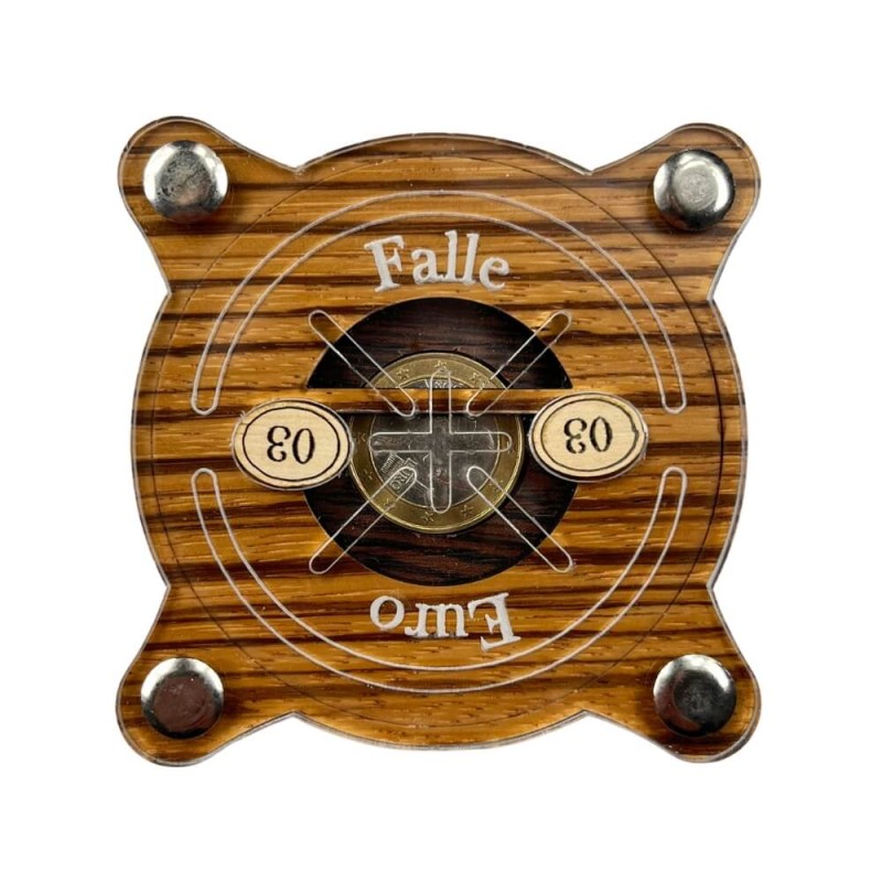 En la caja secreta Euro-Falle 03 tendrás que ser capaz de liberar la moneda que protege en su interior. Tiene el tamaño aproximado de la palma de la mano y cuenta con un mecanismo de apertura muy ingenioso que tendrás que descubrir.