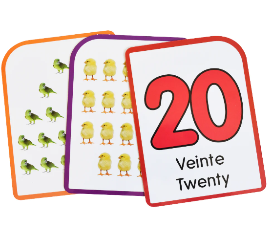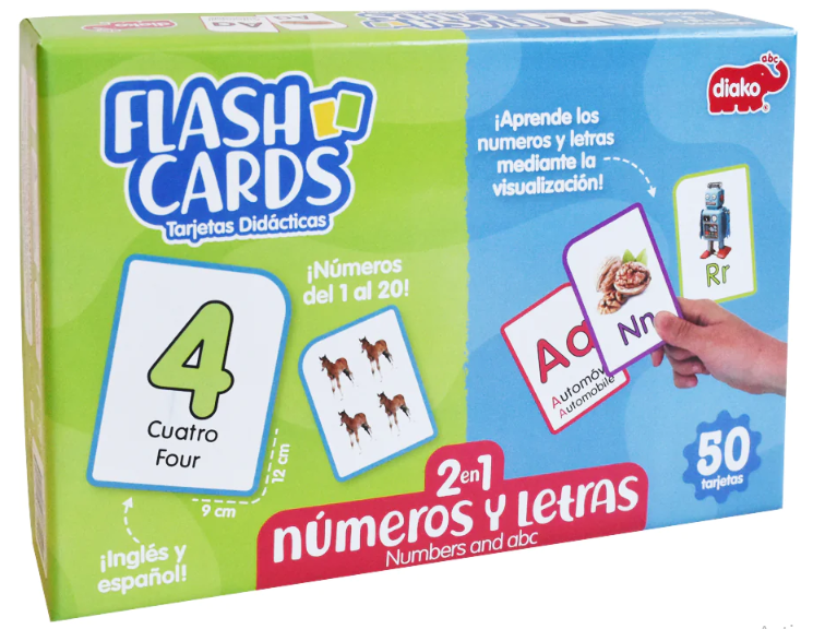 FLASH CARDS | Contienen 50 cartas para practicar números y letras. Encuentra por un lado imágenes alusivas a cada letra y una palabra que comienza con la letra correspondiente por el otro. Las cartas de números contienen imágenes de conjuntos numéricos para contar, números grandes y legibles con su nombre. las tarjetas son doble vista.