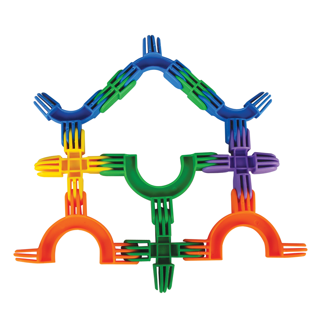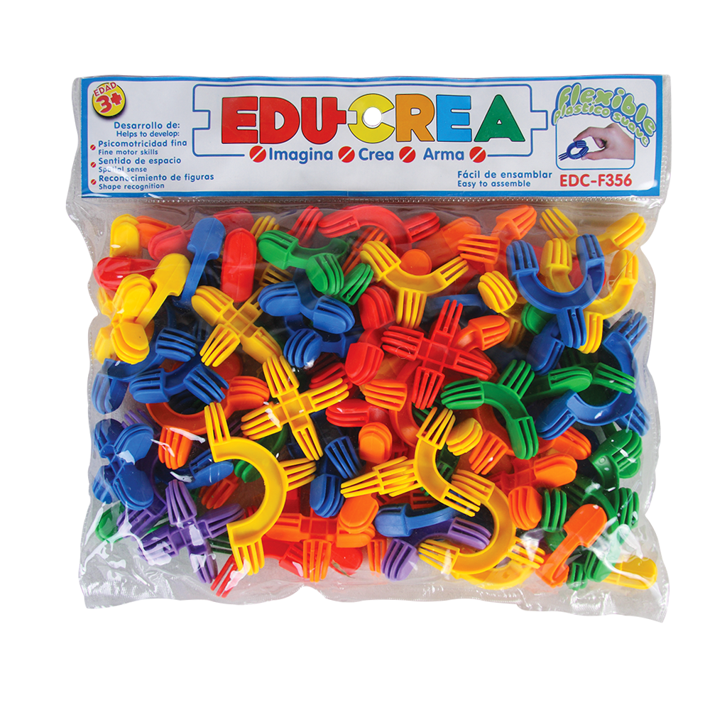 Juego de ensamble con piezas de plástico flexible que se unen entre sí para crear distintas formas. Crea los diseños que tu imaginación te permita. Desarrolla las habilidades estratégicas, la coordinación ojo-mano, la psicomotricidad fina y la imaginación. Empaque: 31 x 29 x 5 cm/ Pieza: 6 x 4.5 x 2 cm