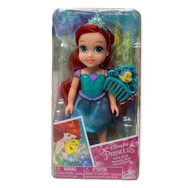 Mini muñeca princesa Disney Ariel de 15 cm de alto y con accesorios de juego.
