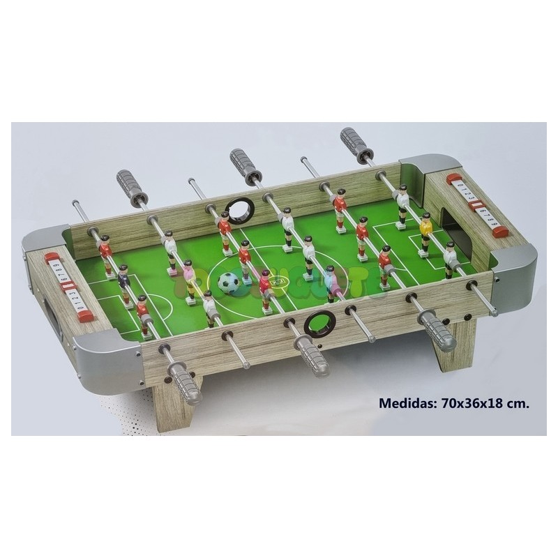 Futbolín de madera de sobre mesa. Con 18 jugadores.