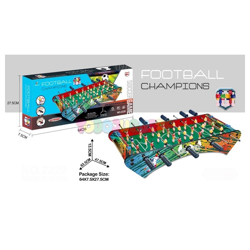 Futbolin de sobre mesa de madera con 26 jugadores.