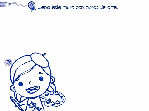 Resulta ser un cuaderno que desarrolla ampliamente el sentido de la observación y memorización del pequeño así como la motricidad, ya que tiene que complementar una serie de escenarios con sus propios trazos según lo que ve o ha visto en su entorno y finalmente decorarlos a su gusto.