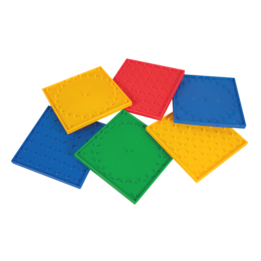 Juego didáctico que apoya en la introducción al aprendizaje de las figuras geométricas. Consiste en un tablero cuadrado y cuadriculado con topes en cada vértice, sobre los cuales pueden colocarse ligas que se sujetan para formar la figura geométrica deseada. Apoya en la concepción de la relación superficie-volumen, profundidad, área, y desarrollo de las capacidades cognitivas. Contenido: 6pzs doble cara. Empaque: 31 x 29 x 5cm/ Pieza: 14 x 14 x 1 cm