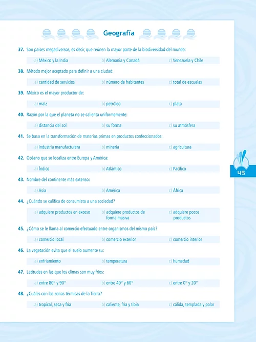 Es una innovadora guía de apoyo para el examen de ingreso a secundaria, con la cual es posible que los alumnos de sexto grado autoevalúen sus conocimientos adquiridos en el aula. Además resulta ser un valioso apoyo para la evaluación en la Olimpiada del Conocimiento. La guía se encuentra completamente actualizada conforme a los programas de la SEP.