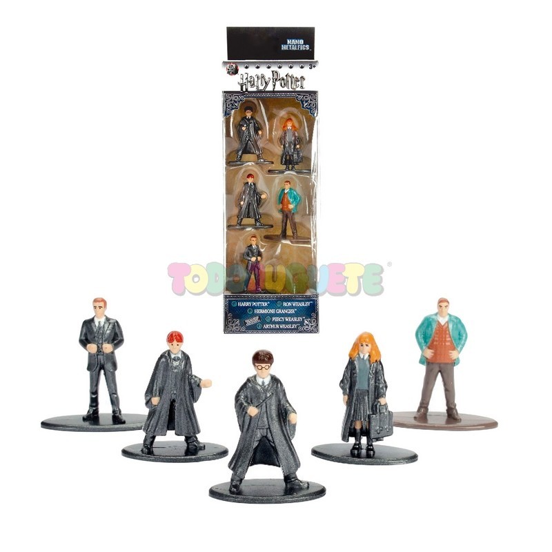 Set de 5 personajes: Harry Potter, Ron Weasley, Hermione Granger, Percy Weasley y Arthur Weasley.