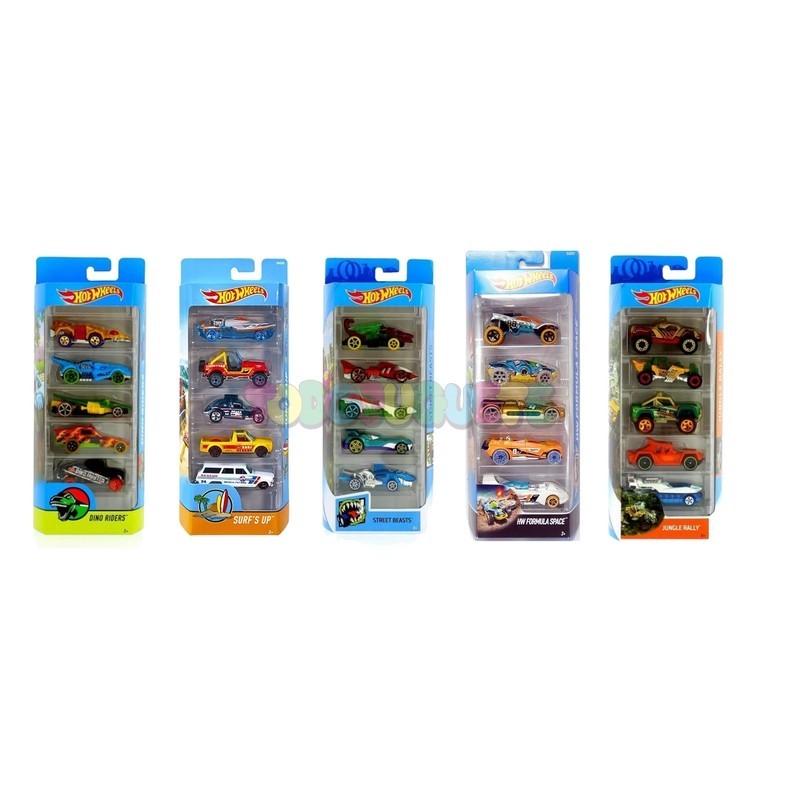 Comienza una colección Hot Wheels® a toda velocidad con un pack de cinco vehículos cargados de detalles. Los packs de cinco vehículos de Hot Wheels® multiplican la diversión por cinco y son