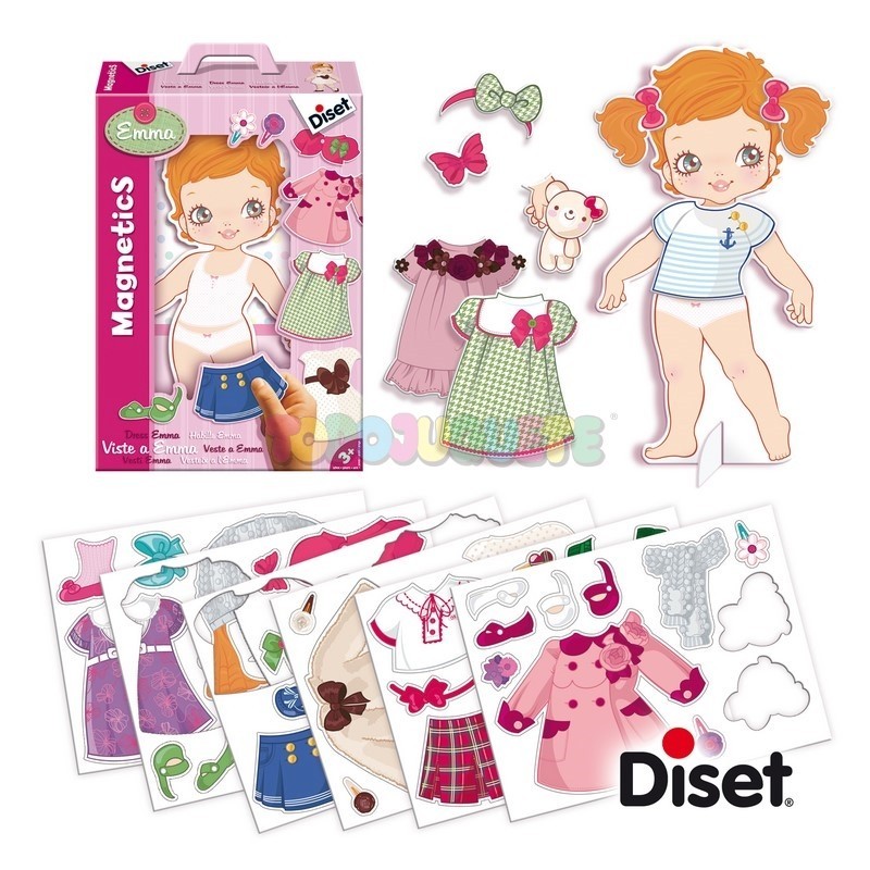 Preciosa muñeca de gran tamaño (35 cms) para jugar a vestirla. Diseño atractivo y dulce que recuerda los recortables de siempre. 6 láminas de vestidos.