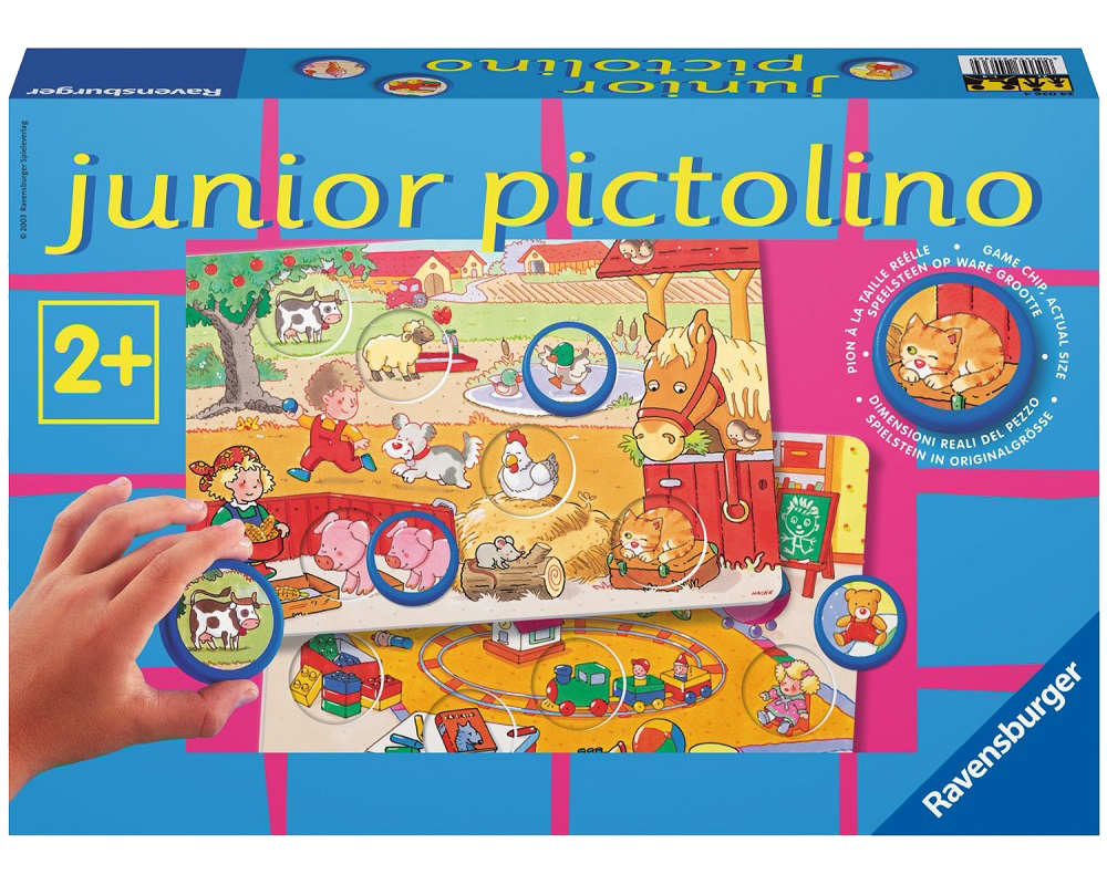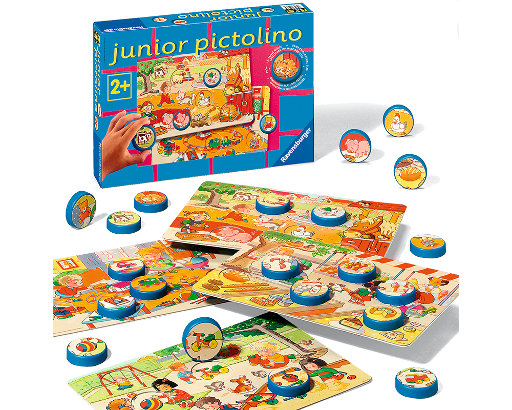 Junior Pictolino. Este juego para asociar y ordenar ha sido desarrollado para niños de 2 años en adelante. Contiene piezas extra grandes especiales para sus manitas. Les ayuda a descubrir imágenes del mundo que les rodea y a enriquecer su vocabulario. El juego ayuda a las habilidades de observación, asociación y manipulación.