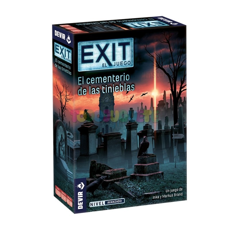 Exit: El cementerio de las tinieblas es una nueva entrega de la serie Exit, los juegos que acercan la experiencia de las salas de scape room a tu mesa de juego. En este tipo de juegos, un grupo de hasta 4 jugadores deben resolver los enigmas y puzzles que el juego les va presentando para poder escapar de una habitación o entorno imaginario. ¡Una auténtica carrera contra el reloj!