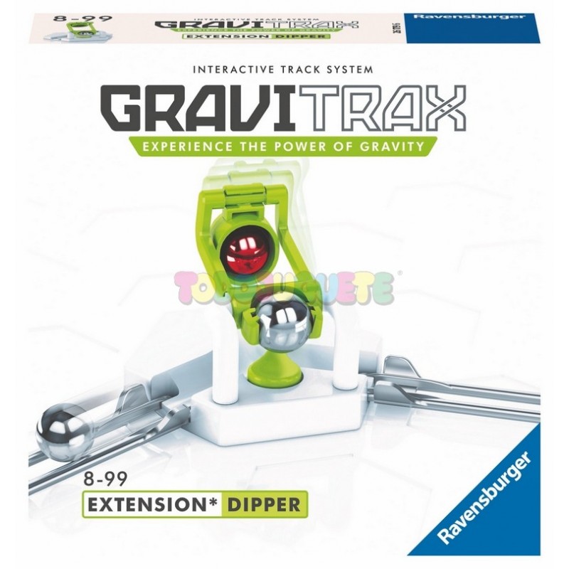 ¡Agrega el Gravitrax Dipper a tu pista y conecta diferentes niveles! El Dipper te permite dejar caer la canica de un nivel a otro. Usa esta extensión para crear una forma dinámica de moverte entre los diferentes niveles de tu pista y nunca perder la dirección correcta.
