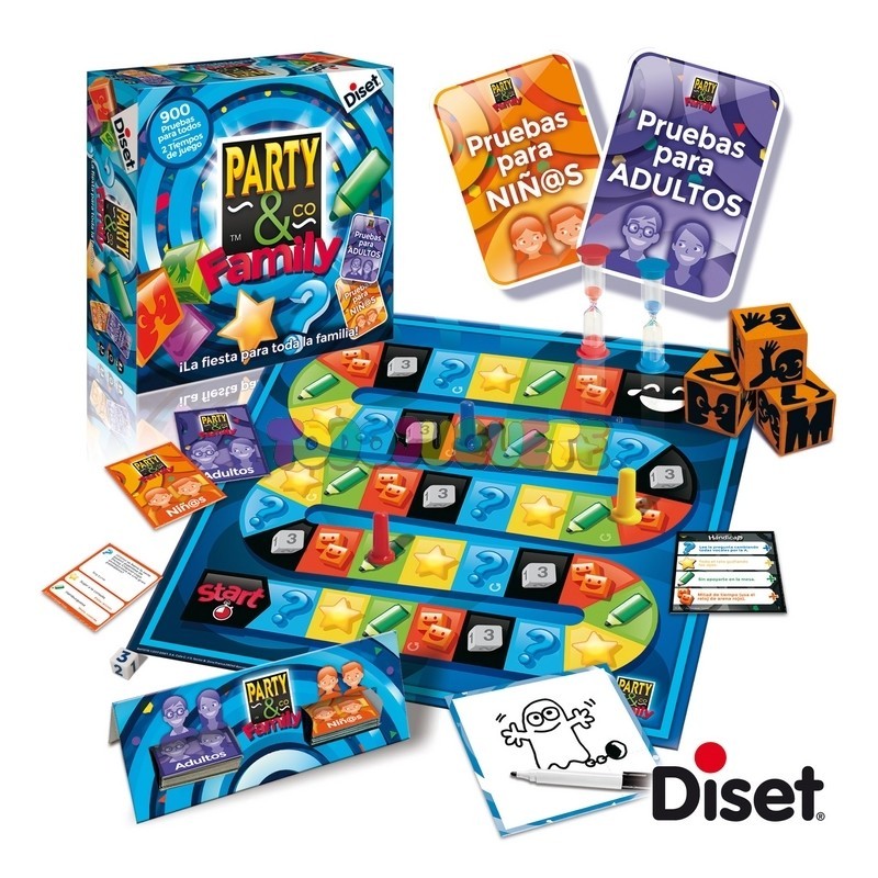 Nuevo Party & Co para jugar en familia, con dos niveles de pruebas: para niños y para adultos. Diversión para todos.