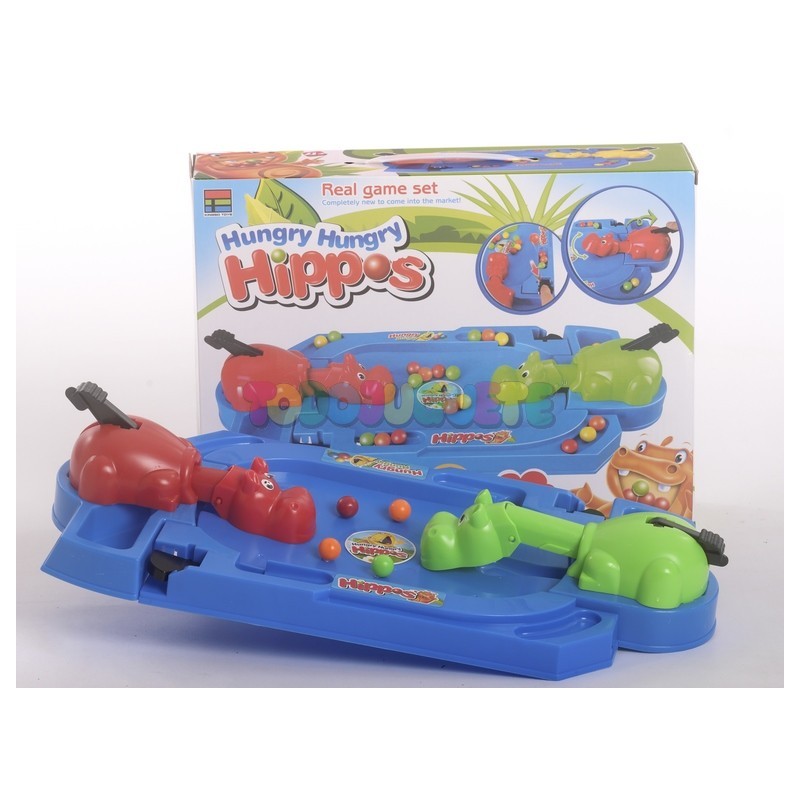 Juego tragabolas con 2 hipopótamos.