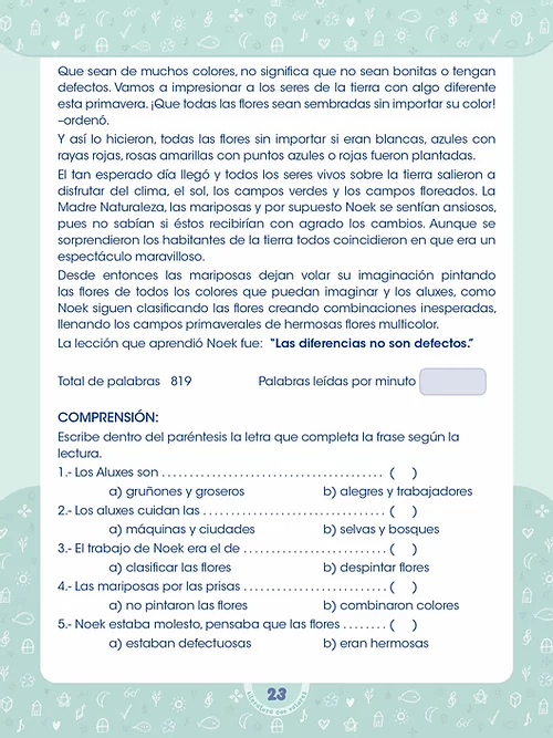 Además al finalizar cada lectura afirmará lo leído resolviendo el ejercicio de comprensión de la lectura.
