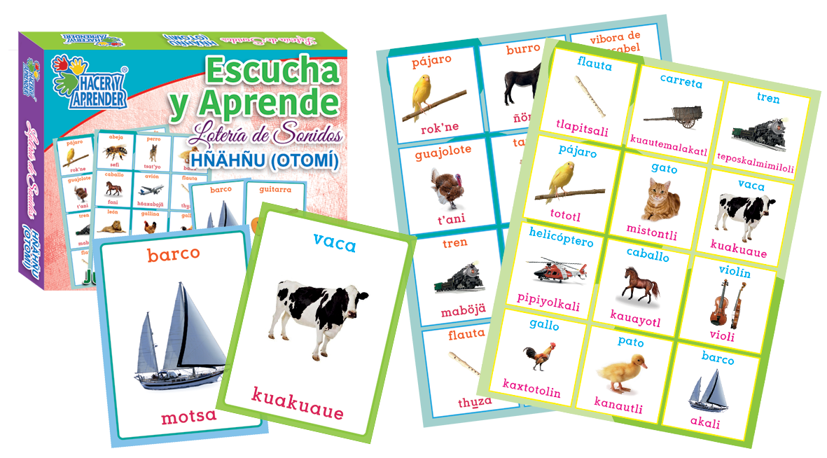 Es la misma mecánica de la lotería tradicional con imágenes y textos en español y su traducción al Náhuatl.