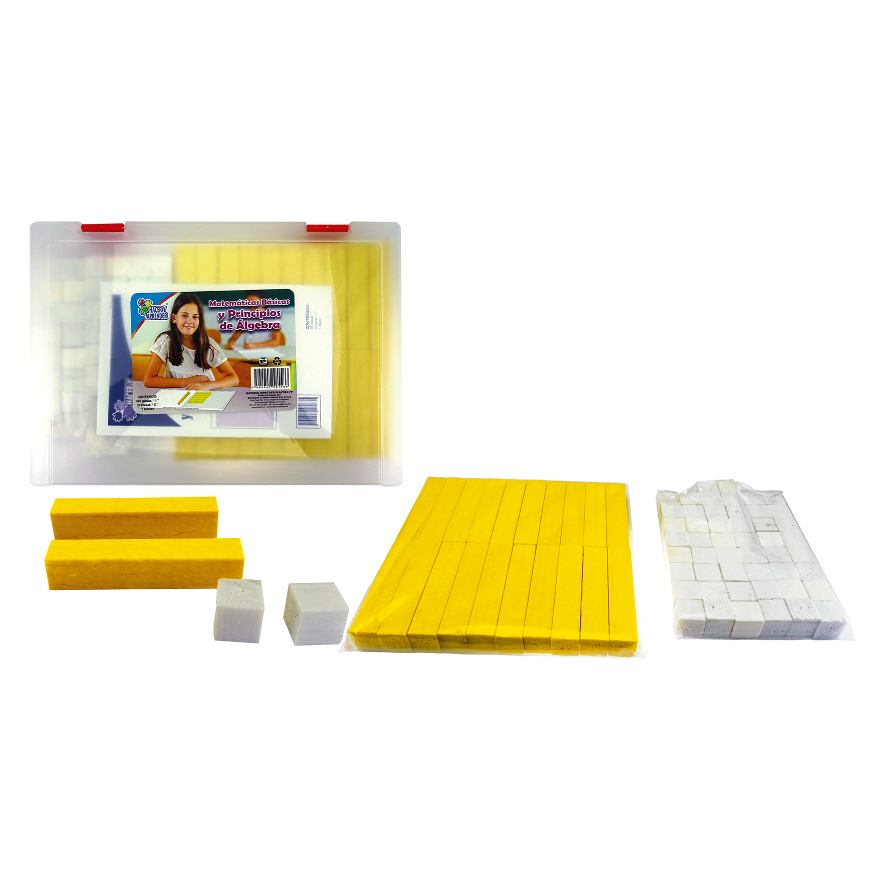 Presentación: 1 instructivo, 1 tablero, 50 piezas «1 x 1» y 20 piezas «x»