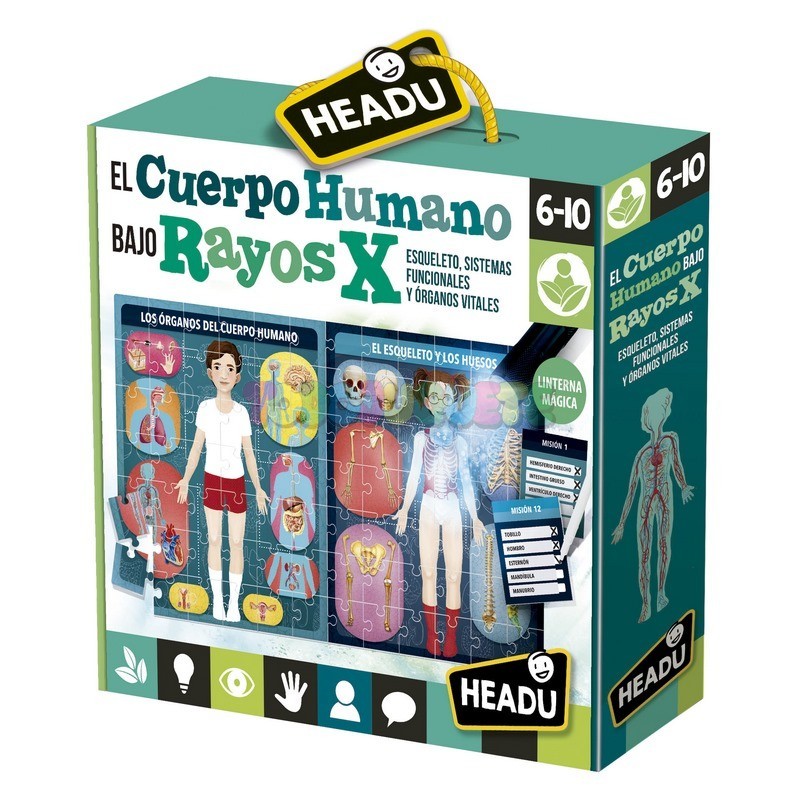 Monta el gran puzzle y aprende las fascinantes cualidades del cuerpo humano. Además, puedes realizar misiones y observar aquello que no puede verse a simple vista con la antorcha mágica.
