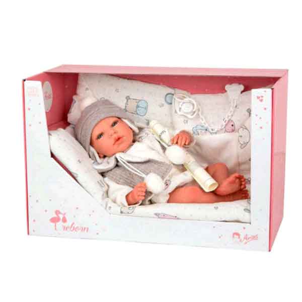 La muñeca viene con manta, chupete, pañal, libro de registro familiar y certificado de autenticidad.