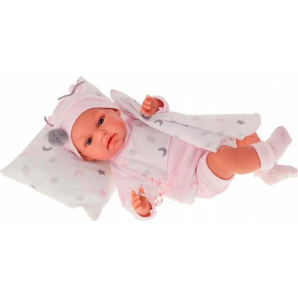 Muñeca Luna Carro de 34 cm con cojín y de color blanco-gris.