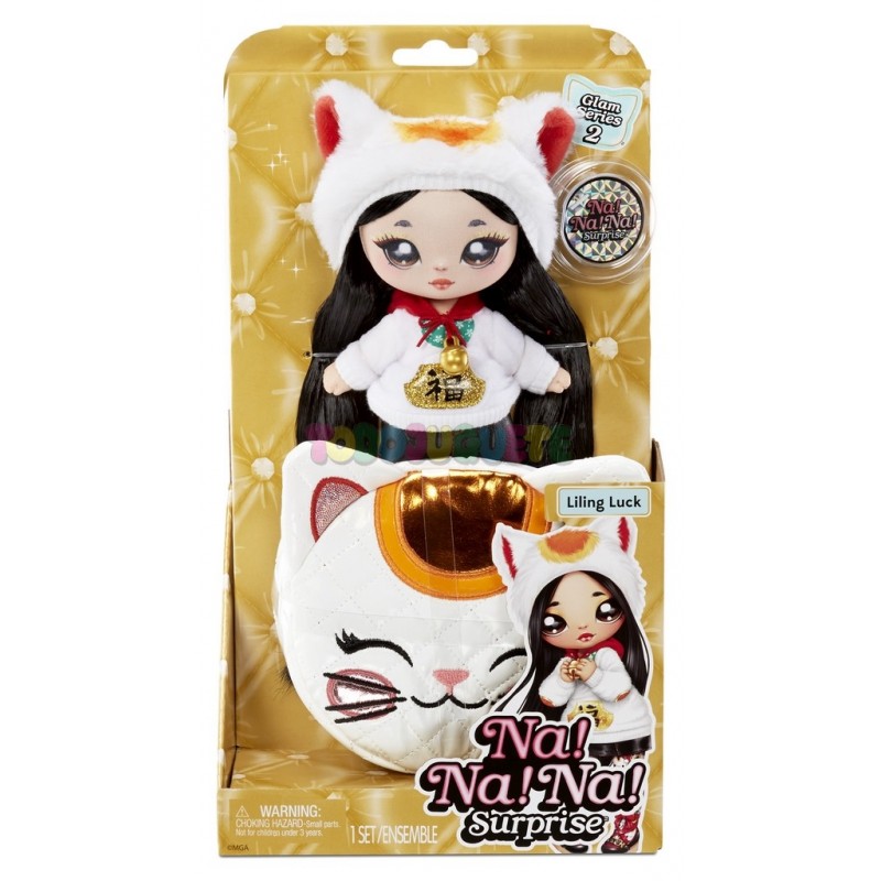 Sube de nivel tu glamur con Na! Na! Na! Surprise2-in-1 Soft Fashion Doll and Purse Glam Series 2! Obtendrás la ventaja de un 2 en 1 con una dulce muñeca de moda y un monedero metálico coleccionable con forma de pompón de animal. Esta serie glamurosa, que lleva el brillo al siguiente nivel, cuenta con llamativas telas metálicas en las prendas para las muñecas inspiradas en animales y un bolso con un práctico clip en forma de animal para sujetarlo a una mochila o a un bolso más grande. Muñecas de moda suaves y articuladas con cara impresa y detalles de moda, ahora presentadas en una bandeja en L para mostrar toda la calidad de los detalles, ¡coleccionarlas a todas será más fácil que nunca!