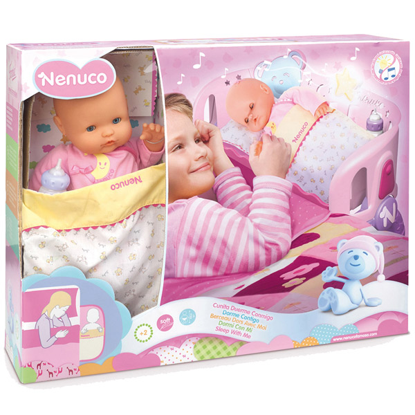 ¡Duerme al lado de tu Nenuco! La cunita se coloca al lado del borde de tu cama. Viene con una lamparita quitamiedos que tiene la música de una dulce nana. Edad recomendada: +3 años. Observaciones: necesita 2 pilas AAA (no incluidas).