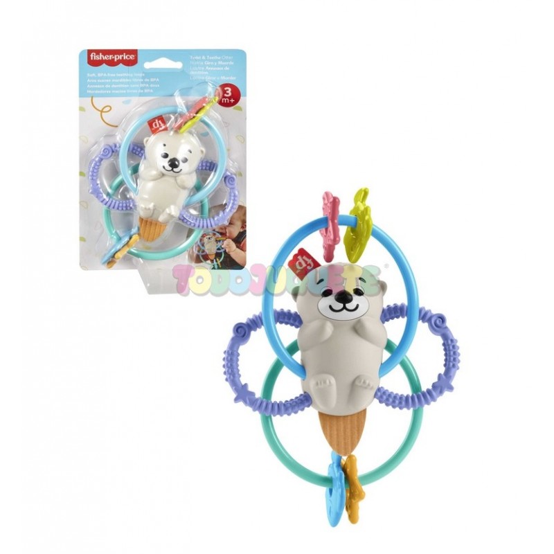 El juguete Fisher-Price Twist & Teethe Otter cuenta con anillos flexibles que son fáciles de agarrar,