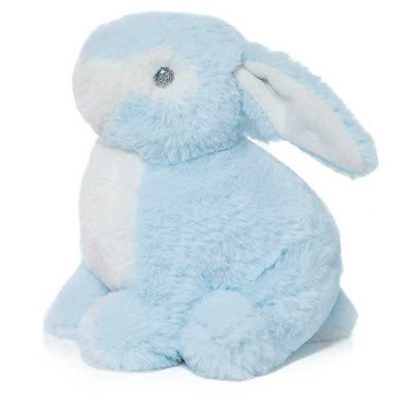 Suave peluche conejito infantil de color celeste y de 22 cm de alto.