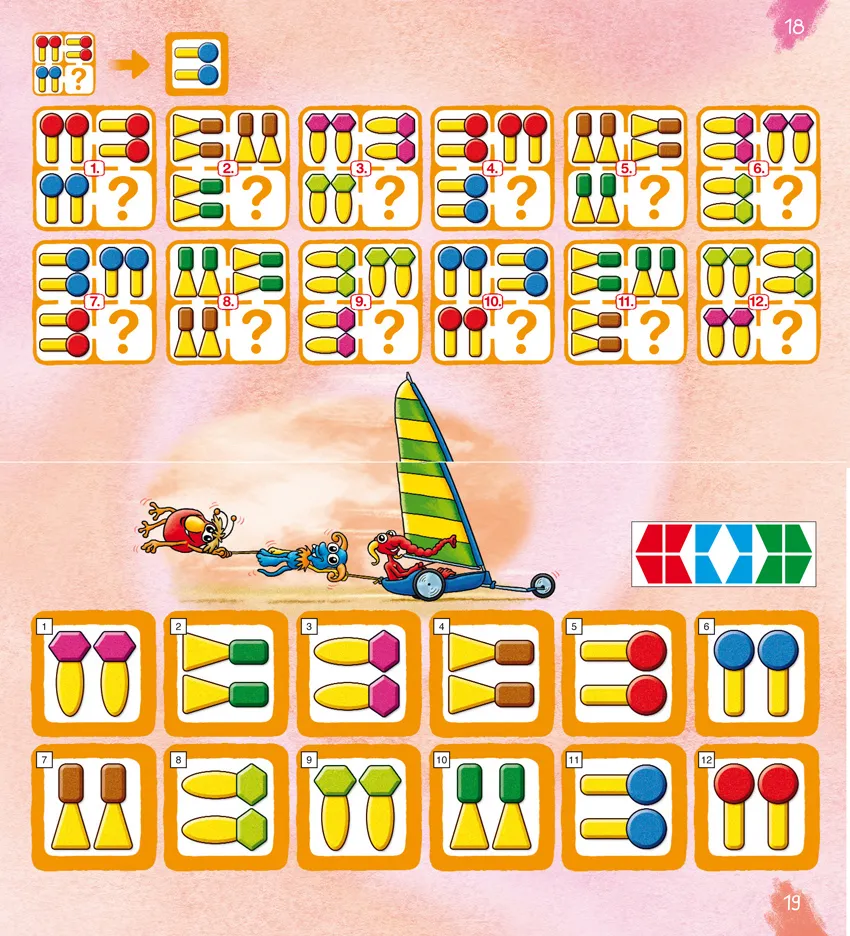 Contiene una serie de variados ejercicios relacionados unos con otros, con cuya ayuda se entrena y fortalece el pensamiento lógico. La visualización sin letras ni texto de los ejercicios permite a los niños con falta de atención o desarrollo lento participar en la rama del pensamiento lógico.