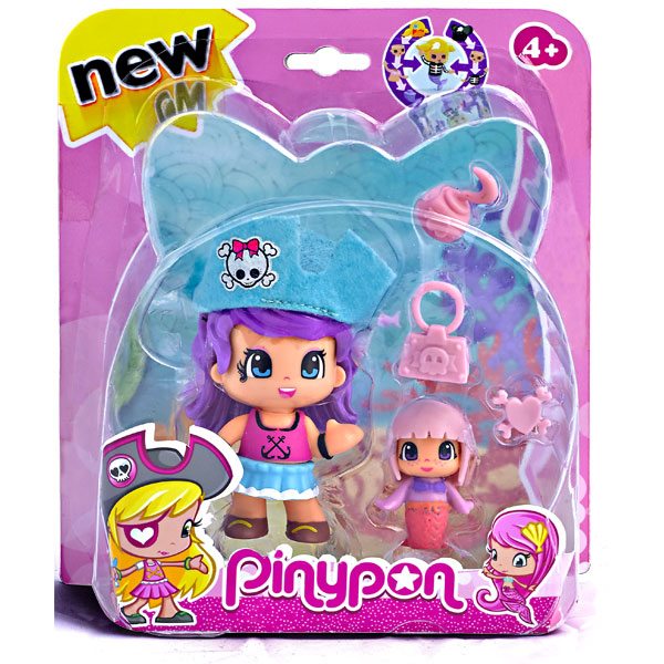 Pack de 2 figuras de Pinypon: pirata cabello morado y sirena de la colección piratas y sirenas. Edad recomendada: +4 años.