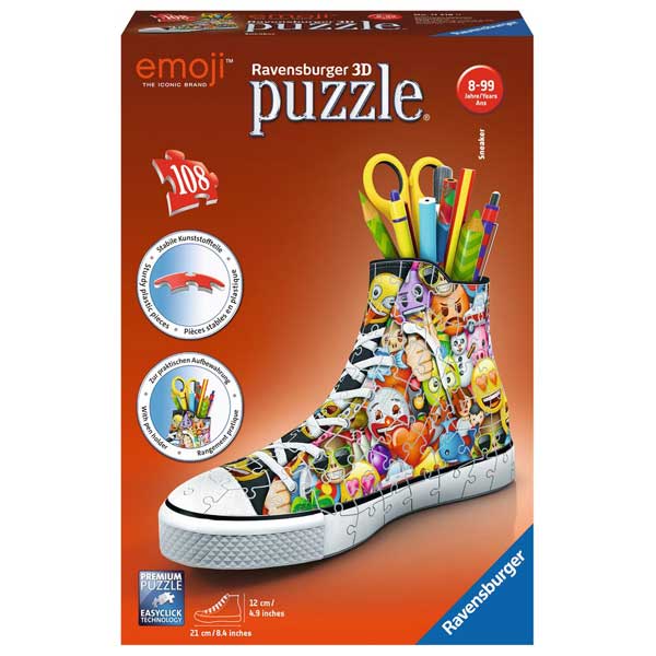 Puzzle 3D Zapatilla Emoji de 108 piezas. Una vez montado utilízalo de lapicero.