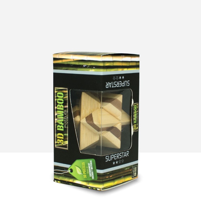 Tiene seis piezas idénticas en bambú de dos colores. Sus piezas encajan entre sí perfectamente, pero necesitarás ambas manos para poder juntarlas.